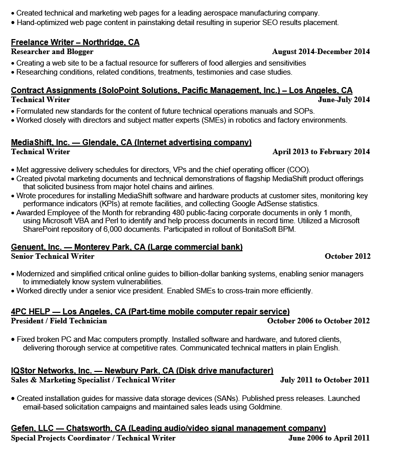 10 years Technical Writer. 10 years in IT. Quick learner.